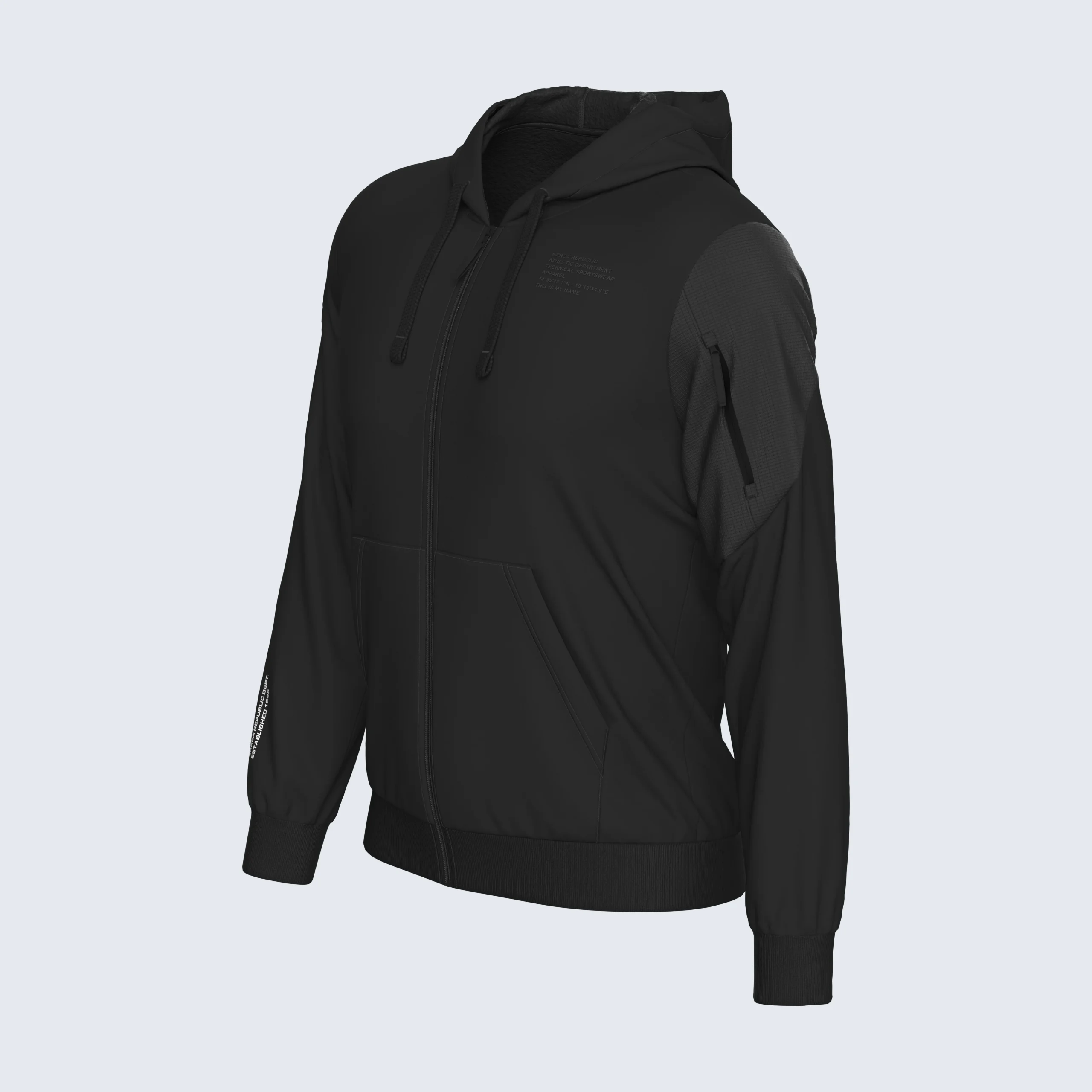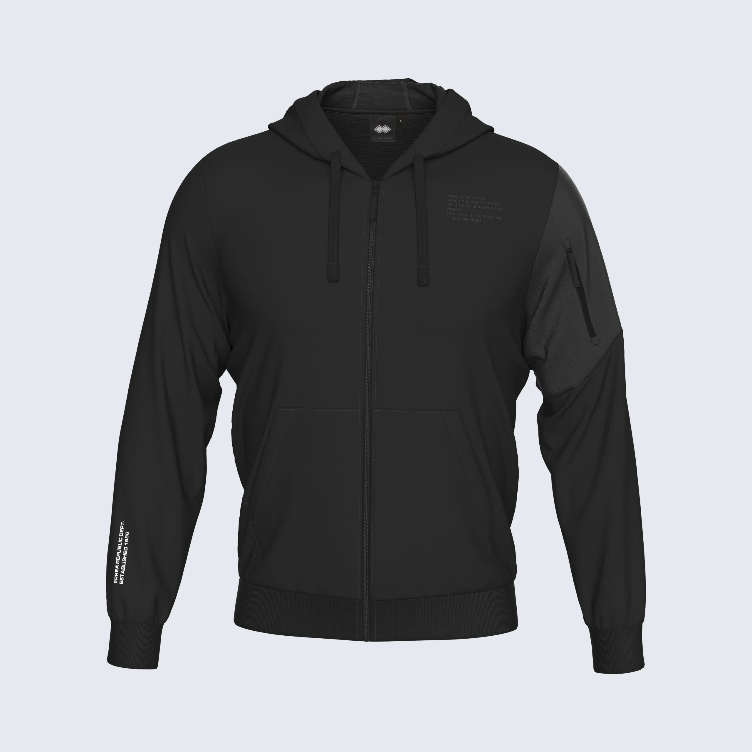 • Seitentaschen + Ärmeltasche mit Reißverschluss